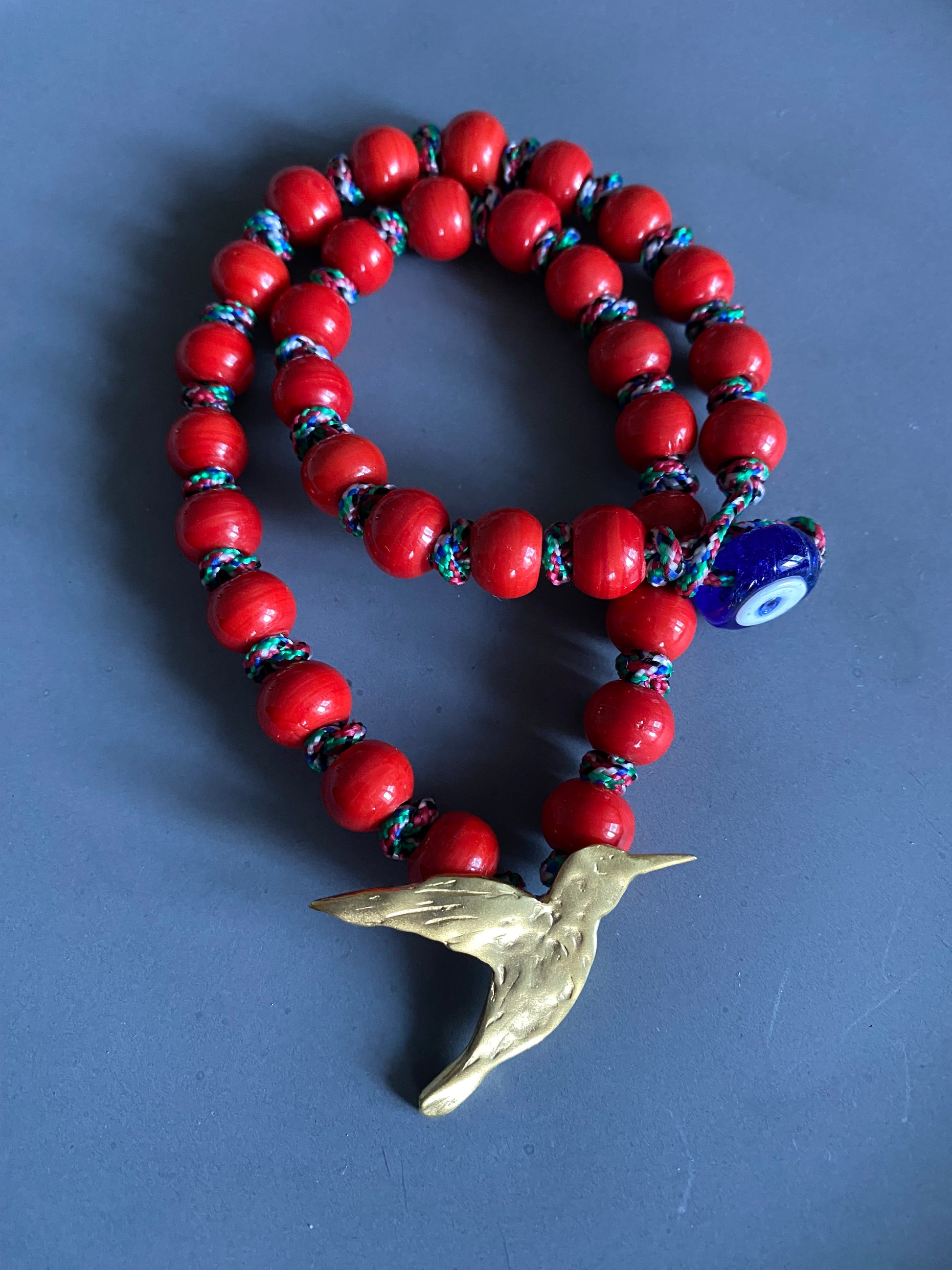 Kırmızı Boncuk Pirinç Kuş Kolye